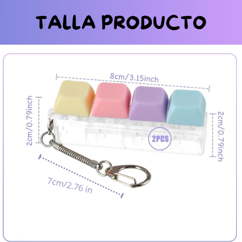 Este mini teclado fidget es tu nuevo aliado: ayuda a aliviar el estrés, evitar morderte las uñas, mantenerte concentrado (especialmente si tienes TDAH), liberar tensión en cualquier momento y llevarlo contigo a todos lados gracias a su tamaño compacto.